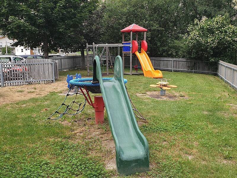 Der kleine Spielplatz befindet sich in der Nähe des Bahnhofs von Laas.