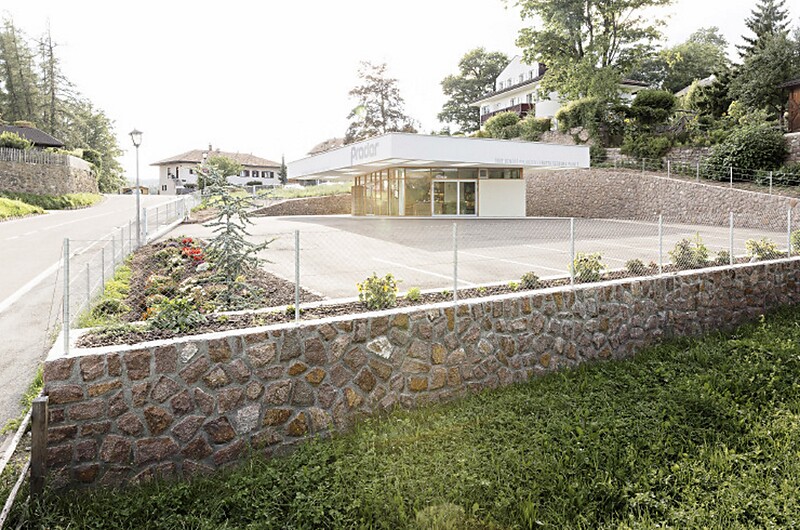 Das besondere Gebäude setzt sich aus den Verkaufsräumen mit Obst- und Gemüsegeschäft, dem Blumengeschäft und dem administrativen Bereich mit Lager und Büro zusammen. Die Räumlichkeiten für Lager, Verwaltung und Infrastrukturen liegen im Norden und bilden das Rückgrat, während sich das Geschäftslokal nach Süden hin öffnet.