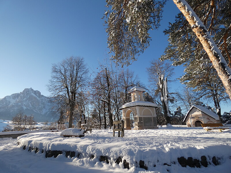 Der Kalvarienberg kann nur zu Fuß vom Ortszentrum erreicht werden. Kurzer Spaziergang mit ca. 30 Minuten Dauer