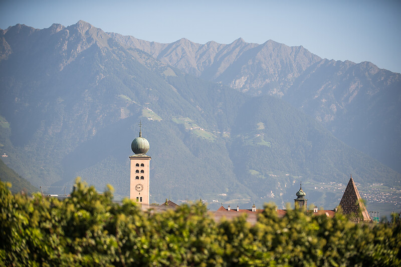 Das kugelförmige Dach des Turmes wird im Volksmund der "Lananer Apfel" genannt. Die heutige Haupt-Pfarrkirche von Lana wurde 1938-1950 nach Plänen des bekannten Stuttgarter Kirchenbauers Otto Lindner im Stile einer altrömischen Basilika erbaut.