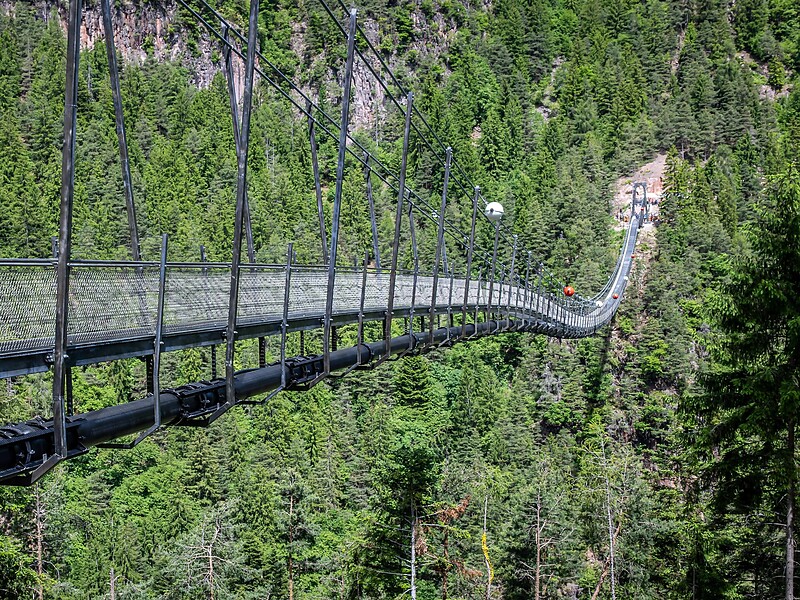 Tauche ein in ein unvergessliches Erlebnis und erkunde die Hängebrücke über das Marterloch. Mit 130 Metern Höhe und 272 Metern Länge bietet sie dir einen eindrucksvollen Ausblick und eine spannende Herausforderung.