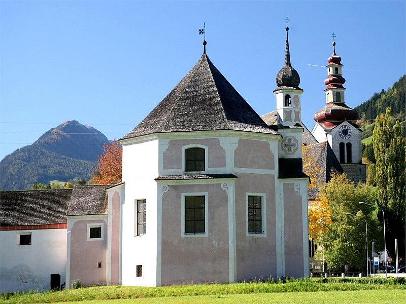 Der oktogonale Bau im Deutschhaus von Sterzing wurde 1729 - 1733 nach Plänen von Giuseppe Delai anstelle einer älteren Kapelle errichtet. Matthäus Günther aus Augsburg schuf sowohl das Hochaltarbild als auch die Deckengemälde mit der hl. Elisabeth und dem hl. Georg, den beiden Patronen des Deutschen Ordens. Die Wände und das Gewölbe werden von einer reichen, außergewöhnlich feinen Stuckdekoration von Anton Gigl aus Innsbruck geschmückt. Die Kirche ist über das H. Multscher- und Stadtmuseum zu besichtigen.